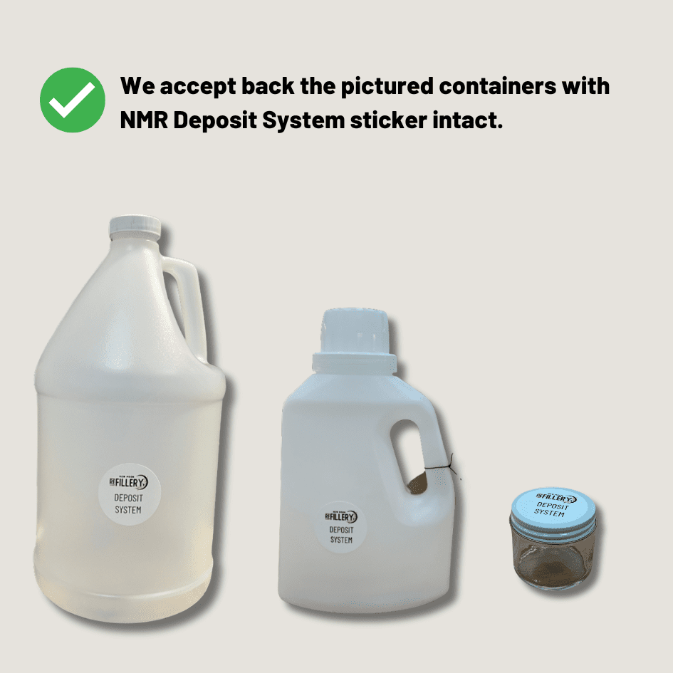 Only bottles with the NMR Deposit System stickers will be accepted (do not remove stickers, please!).